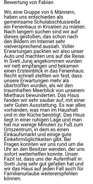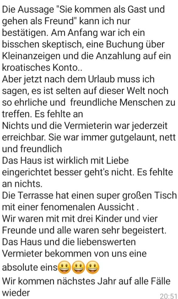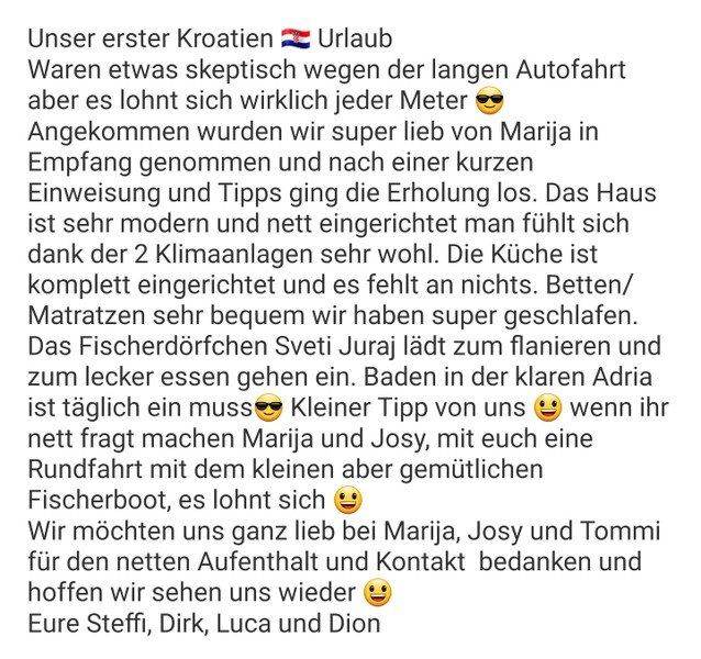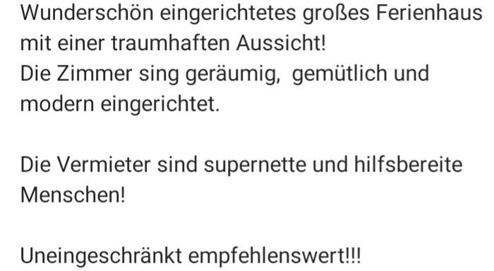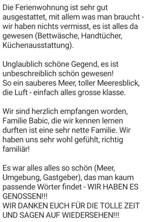 wir haben uns dazu Entschlossen, ab 2022 keine Bewertungen mehr zu Veröffentlichen, da wir unseren Gästen die Zeit für das Schreiben einer Bewertung ersparen möchten, und wir auch uns nicht mehr die Mühe machen möchten, jede Bewertung hier hochzuladen.
